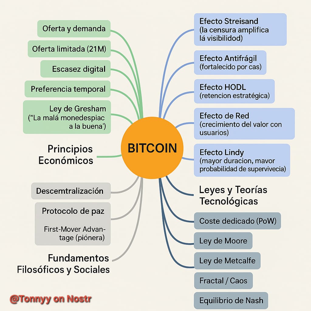 - Ley de la descentralización: Ninguna autoridad puede alterar las reglas a voluntad, ciegando a Bitcoin frente a manipulaciones y manteniendo incentivos para los participantes.